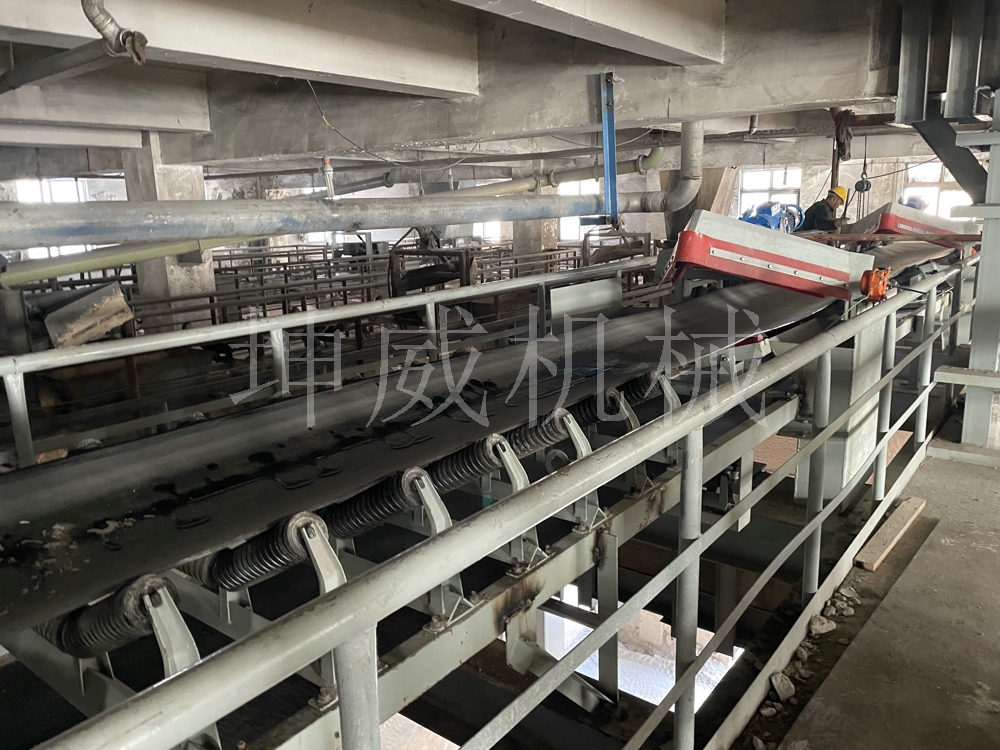 河南坤威機(jī)械在湖北黃石的施工現(xiàn)場(chǎng),該皮帶輸送機(jī)為帶犁式卸料器的機(jī)型,目前已經(jīng)安裝使用。